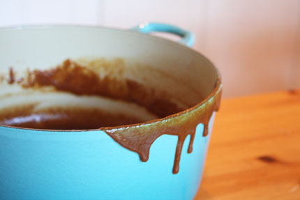 And I love, as the caramel cooks, to take out some caramel early to make an unbelieveably good caramel dip…