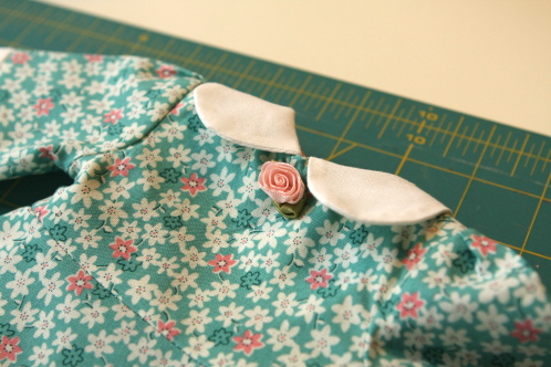 Next steps for me will be to add the belts… the one you see in the picture is just laid across but not sewn on. I also need to add embellishments. The devil is in the details, and I am headed to JoAnn’s today to look for tiny buttons or maybe a tiny buckle (in my dreams) to add to the dresses. I kind of liked the way the little pompoms looked on the collar, so I may try to tack that on after the fact.